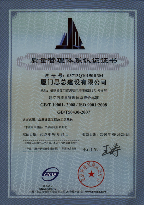2013質(zhì)量管理體系認(rèn)證證書