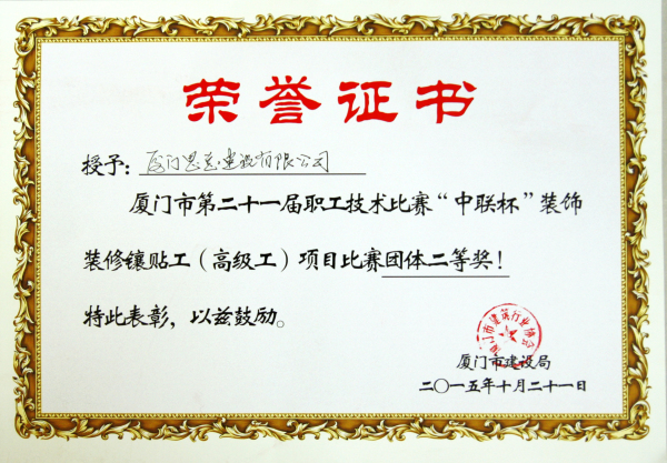 廈門市第二十一屆職工技術(shù)比賽“中聯(lián)杯”裝飾裝修鑲貼