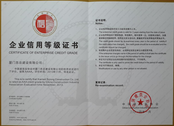 2014全國(guó)建筑業(yè)企業(yè)信用評(píng)價(jià)3A